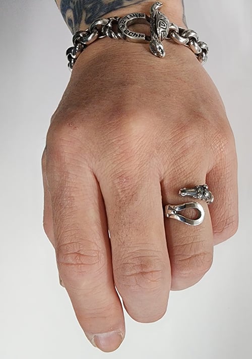 ホースヘッドと蹄鉄のフリーサイズリング