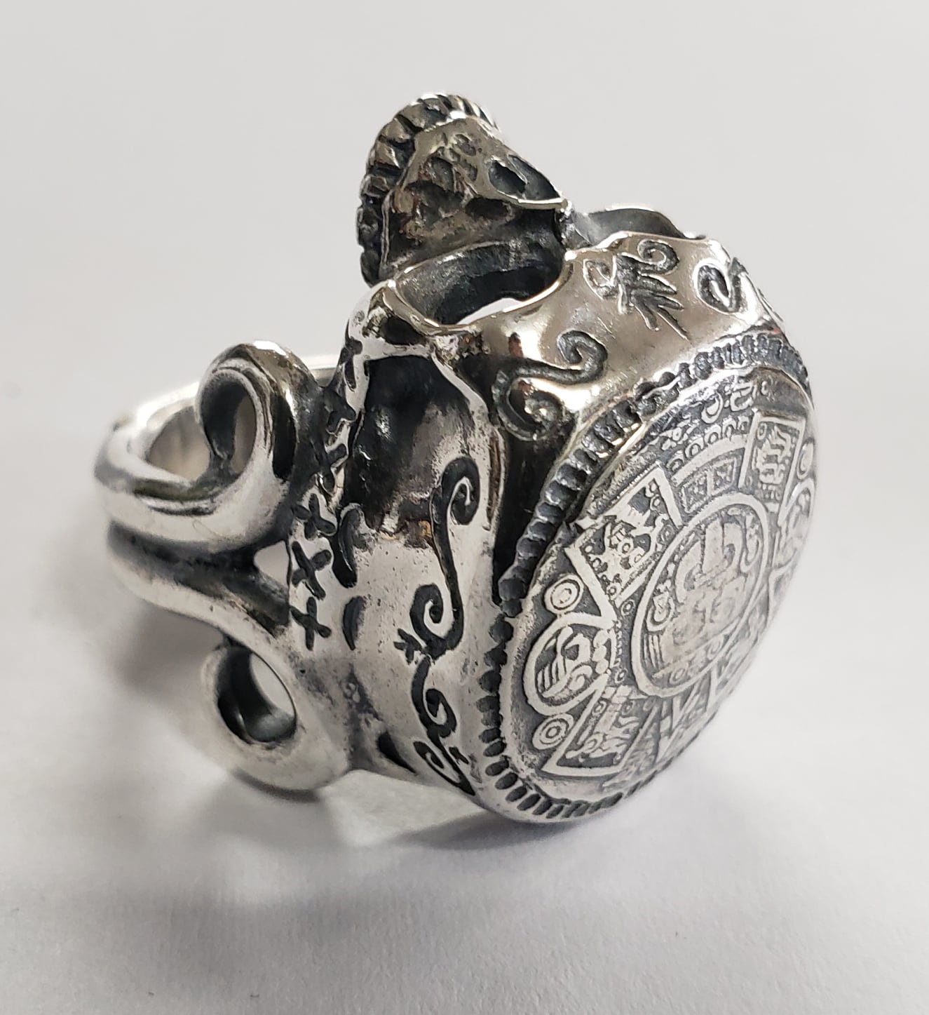 21R-MCS001S : RING / MAYA CALENDAR SKULL